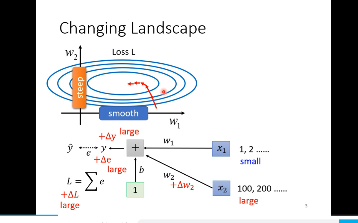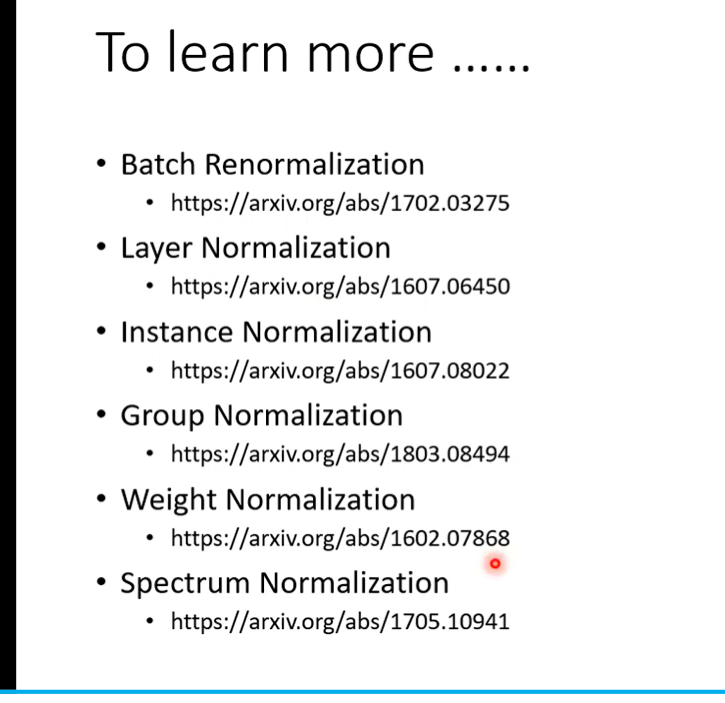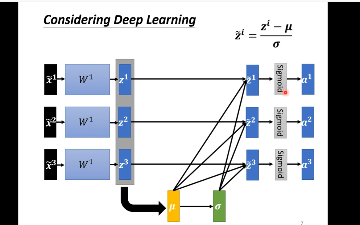 理解权重影响的问题 和这个surface是怎么来的 我们要不断修正的是w1 w2 mean 就是平均值 standard deviation 就是标准差 标准化 数学的影响就是 loss converge 收敛更快 但是还是有个问题,在实际的多层神经网络中 每经过一层 可能分别差别又会变大 所以我们还是需要不断地进行normalization 可以是activationfunc 之前 也可以之后 sigmoid 最好之前 因为可以化到-1 1 之间使得函数的值变化比较大