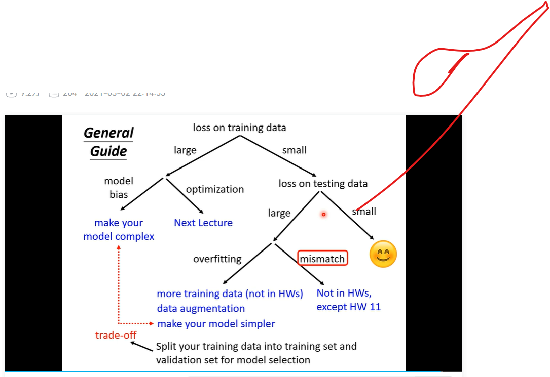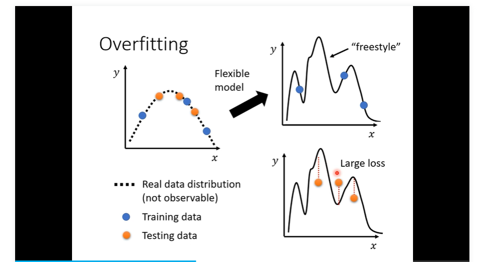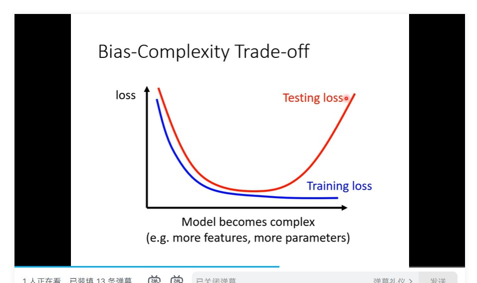 - 区分 overfitting 与 model bias 存在一个complexity 与 bias 关系