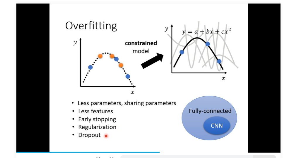 - fully connected layer弹性最大 receptive field 共享参数 减小了弹性这两个加起来就是convolution al layer 对应的就叫 CNN model bias 较大