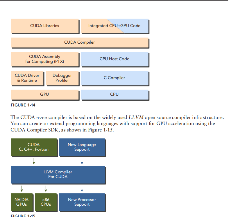- Heterogeneous Computing- host指cpu,host codes run in CPU ,CPU code is responsible for managing the code and environment and device code running in GPUs.