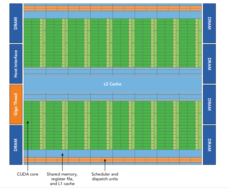 - 一个core通常有一个整数ALU和浮点ALU  gigathread 就是全局的安排block到SM的 gigathread 就是全局的安排block到SM的
